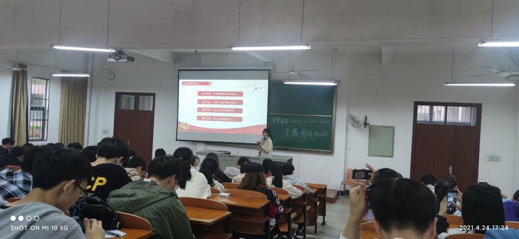 为庆祝建党100周年,加强学生的爱国爱党意识,弘扬党的精神,引导学生领悟中国共产党百年奋斗光辉历程和中国共产党为人民谋幸福的初心,提升政治素养和传承红色基因,四虎 各班级于4月24日晚在8栋教学楼开展了“学党史知党情跟党走”主题班会。会议由各班班长和团支书主持。