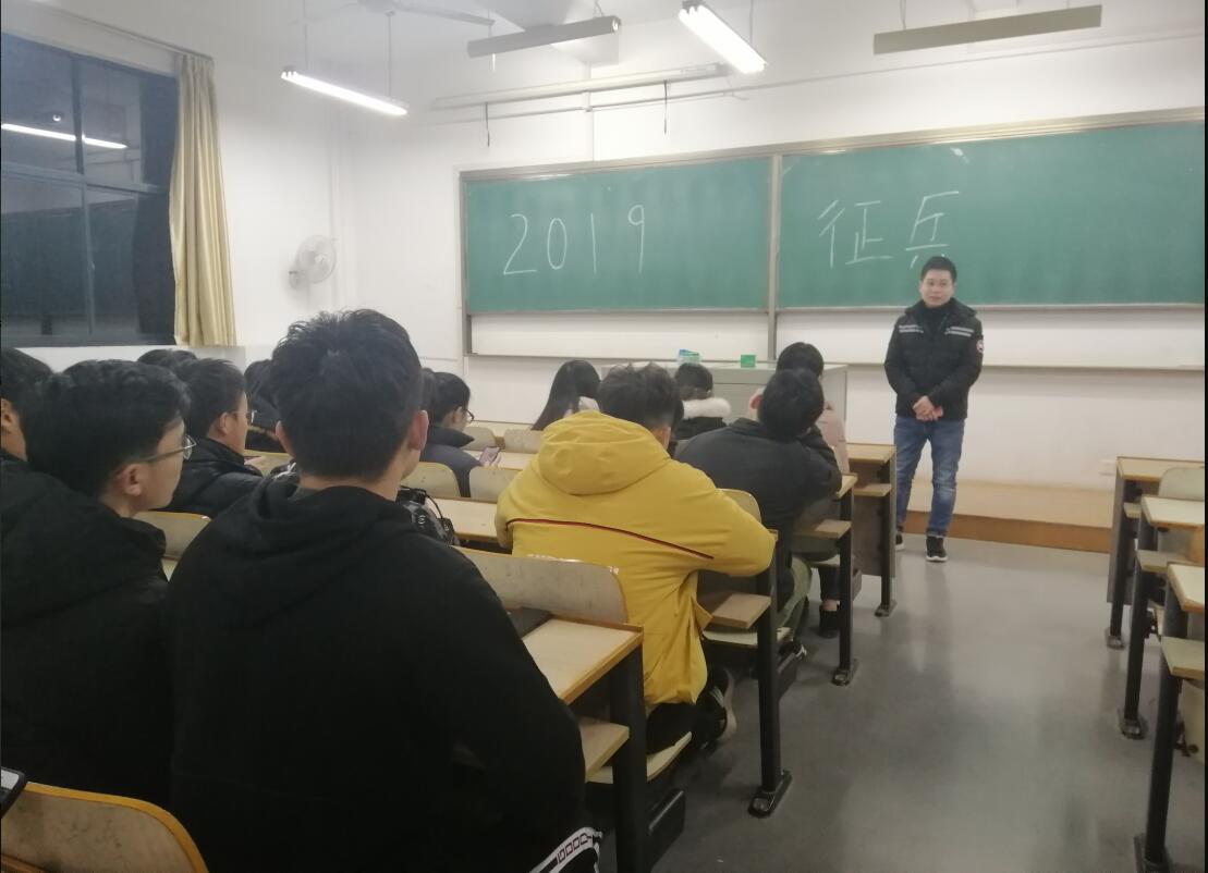 祝老师首先给同学们传达了《关于集中开展2019年大学毕业生征兵宣传活动的通知》精神,从征兵的范围条件、入伍的基本身体条件、征兵程序安排、报名方式、大学生应征入伍的优惠政策等方面为同学们进行了详细解读。鼓励同学们积极响应国家号召,立志献身国防事业,号召同学们踊跃登记报名,为国防建设奉献青春力量,为四虎 和学院增光添彩。