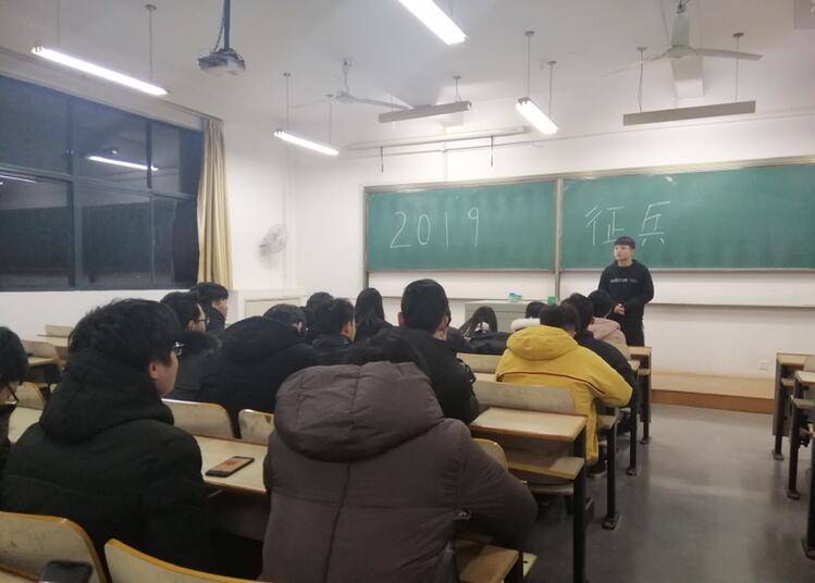 根据省征兵办和省教育厅关于开展2019年大学毕业生征兵宣传活动相关文件精神和四虎 武装部统一部署,四虎 于1月6号晚开展了2019年征兵宣传系列活动,同时邀请了2014级退伍复学学生晏松参会并做了朋辈交流。活动由毕业班辅导员祝捷老师主持。