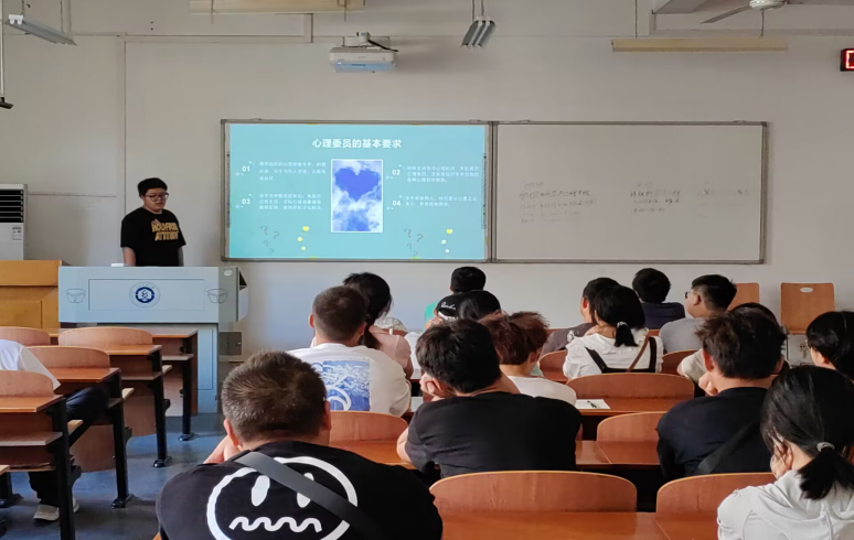 于10月3日下午三点在YG03-414教室举办心理委员专题培训,学院大一至大三全体心理委员以及心理工作站全体驻会志愿者参加活动,心理工作站学生骨干蒋末潮主持活动。