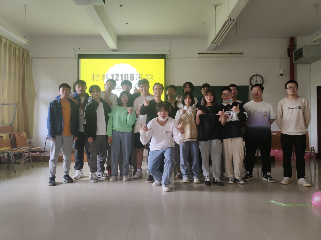 材料12106班:首先是通过小游戏进行了分组,分组结束后,大家八个人一组进行下面的游戏。期间多位同学因为输了游戏上台给同学们表演节目,其中不乏歌舞类的节目。然后大家进行了踩气球游戏。大家通过小游戏,组成两两一队,一个同学防守一个同学进攻,但两个同学必须拉着手不能松开。同学们在活动中收获快乐,同时也释放了身心压力。